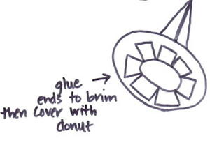 Glue slits to the underside of the hat. Glue second doughnut piece to cover up slits.