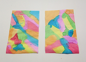 - When the pieces of painted paper are dry, cut the painted paper in half so that you have two 5"x8" (approximately) pieces.