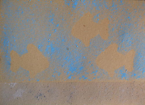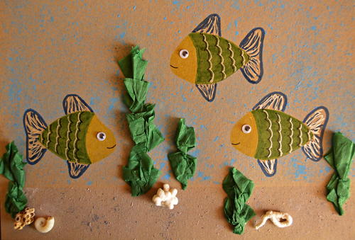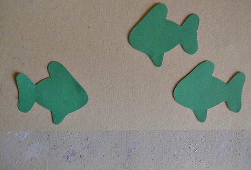 Use small pieces of Prestik to secure the fishes to the top of the brown cardstock.