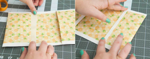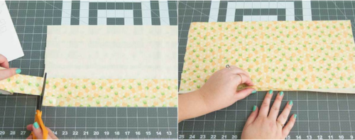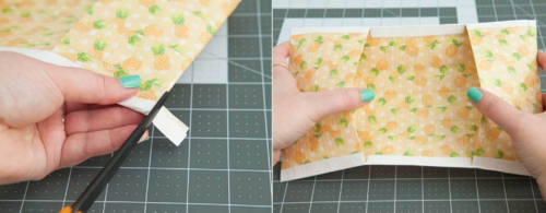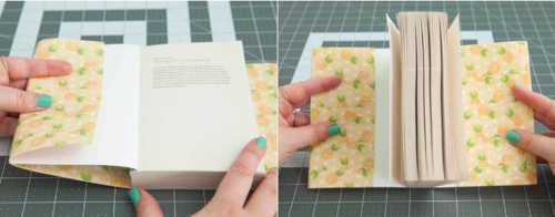 Hold the book up to the “fabric” to find where it needs to fold around the book front and back. Fold the “fabric” around the book and crease to mark.