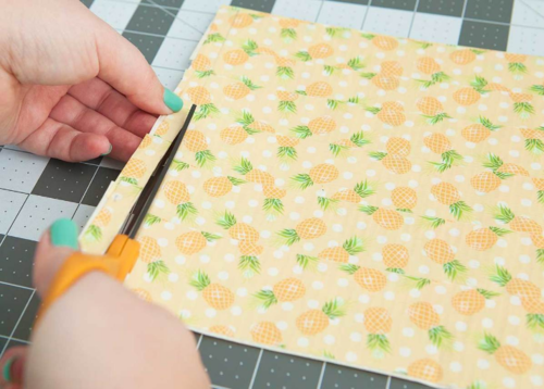 Trim any excess "fabric" to reach your determined book cover size, using a ruler and the cutting mat as your guides.