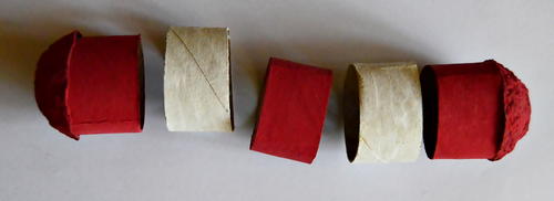Paint the rings with the attached egg cups red. Paint another ring red and paint the remaining two rings white. Allow to dry thoroughly.