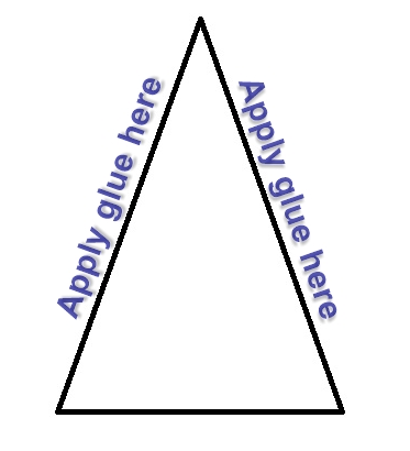 Depending on the child's age, this step may need help from an adult. Cut two red triangles for the worm's hat. Apply glue on two sides of the triangles and press them together. Allow the glue to dry for a few seconds. (See the diagram below for size and shape of the triangles.)