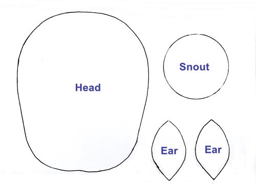 Trace the pattern parts onto the felt. Trace the head and one set of ears onto the brown felt, and the snout and one set of ears onto the caramel felt. Cut all the parts out. -