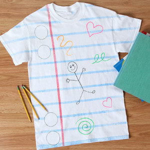 10. Slide doodle template underneath t-shirt and trace over it with fashion markers.
