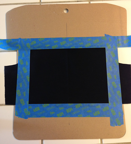 Using your pattern, cut your front chest pattern piece to size. Tape fabric to board using the tape.