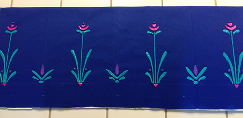 Repeat process until all flowers are completed. You should end with a tall flower and have a short flower in the center of the fabric. Allow time to dry. Once both top and bottom are dry, finish assembling your dress according to pattern instructions.