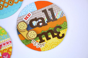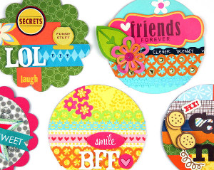 - Lastly, add character to the circle using stickers and embellishments to support the fun, trendy sayings that are popular with the teen set these days. For a little different shape, you can try the same process using the XXXX-Large Pretty Scallops. Follow the same process of punching the chipboard and layering patterned paper, or simply punch a piece of chipboard AND a piece of patterned paper and adhere the paper over the chipboard before embellishing.