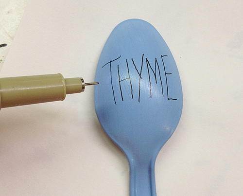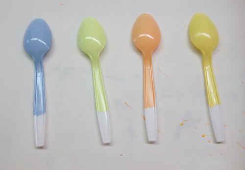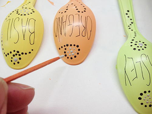 Paint each spoon with a thin coat of paint, leaving the bottom 2-inches of the handle unpainted. This is where the spoon will go into the ground.