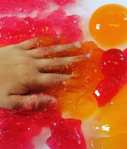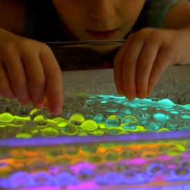 Encourage sensory play. Sensory play can relax your child in a stressful situation because it reduces overstimulation by redirecting them to focus on one sense. Sensory play can be anything from these Jello Sensory Balls to glow in the dark crafts your kids can feel and look at when they're feeling upset.
