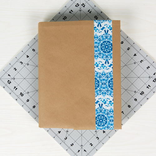 Add one strip of Duck Tape onto the brown bag, folding over the edges.