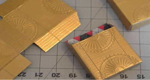 Crease each fold, assemble each box, and glue together the sides using a hot glue gun.
