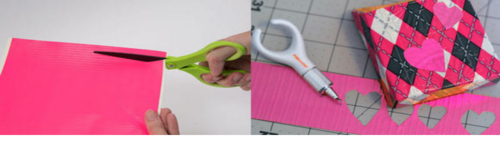 Cut strips of Duck Tape® and then, using your Fingertip Swivel Detail Knife cut out a few hearts to add to your locker pockets.